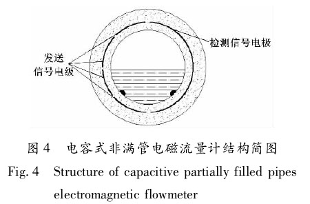 ②電容式非滿管生活污水流量計(jì)h。電容式非滿管生活污水流量計(jì)結(jié)構(gòu)簡(jiǎn)圖如圖4所示。、檢測(cè)信號(hào)電極 發(fā)送信號(hào)電