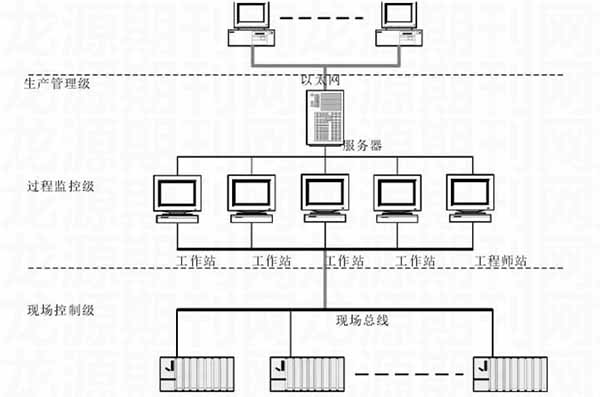 針對鎢礦選廠生產(chǎn)的實際需求,這里應(yīng)用相應(yīng)的自動化技術(shù),對自動化監(jiān)控系統(tǒng)進(jìn)行了設(shè)計。在系統(tǒng)設(shè)計中,遵循“方案合理、技術(shù)先進(jìn)、運(yùn)行可靠、操作方便”的原則,系統(tǒng)整體采用集散控制系統(tǒng),基于現(xiàn)場總線通訊,其整體網(wǎng)絡(luò)構(gòu)架如下: