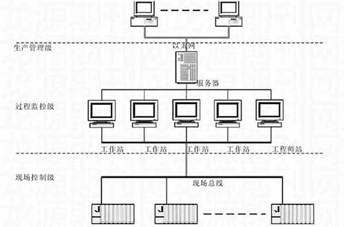 針對鎢礦選廠生產(chǎn)的實(shí)際需求,這里應(yīng)用相應(yīng)的自動化技術(shù),對自動化監(jiān)控系統(tǒng)進(jìn)行了設(shè)計(jì)。在系統(tǒng)設(shè)計(jì)中,遵循“方案合理、技術(shù)先進(jìn)、運(yùn)行可靠、操作方便”的原則,系統(tǒng)整體采用集散控制系統(tǒng),基于現(xiàn)場總線通訊,其整體網(wǎng)絡(luò)構(gòu)架如下: