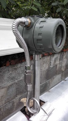 9.傳感器在有保溫層管道上的安裝。測量高溫蒸汽時(shí),保溫層*多不能超過支架高度的三分之一。