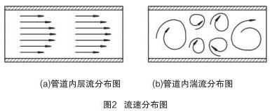 當(dāng) Re > Rec 時(shí),管道內(nèi)流體為湍流(湍流是流體的不規(guī)則運(yùn)動,流場中各種量**間和空間坐標(biāo)發(fā)生紊亂地變化),如圖 2(b)所示。