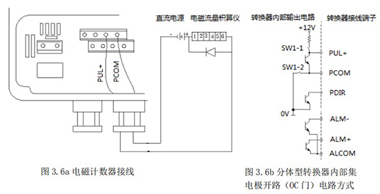 3.4.5 頻率(脈沖)、上下限報(bào)警、流向標(biāo)示等輸出均為集電極開路的電平輸出信號。