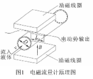 如圖1所示,某一時刻由一對勵某一時刻由一對勵磁線圈產(chǎn)生的磁感磁線圈產(chǎn)生的磁感應強度B,方向向上,流入液體的速上,流入液體的速度為v,管的直徑管為D,兩極的距離為Le,兩極間電動勢,兩極間電動勢ε正比于磁感應強度正比于磁感應強度B、流速v和兩極間的距離Le,即: